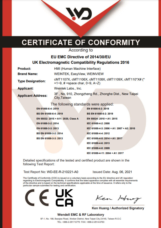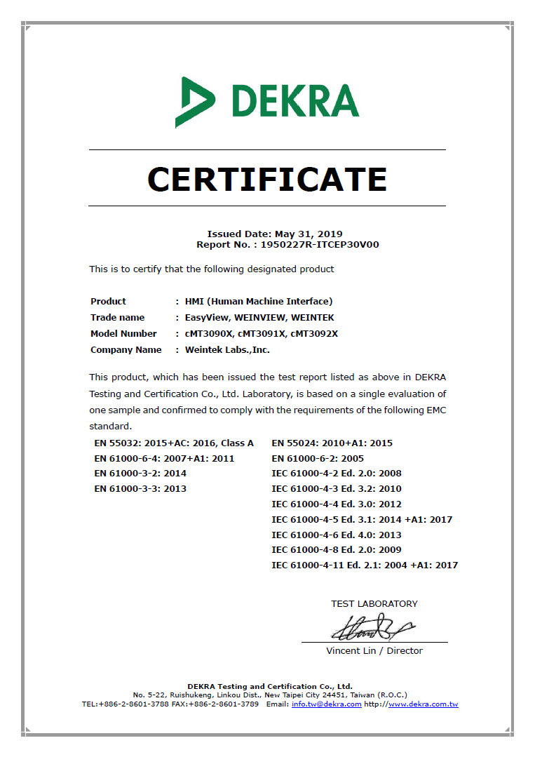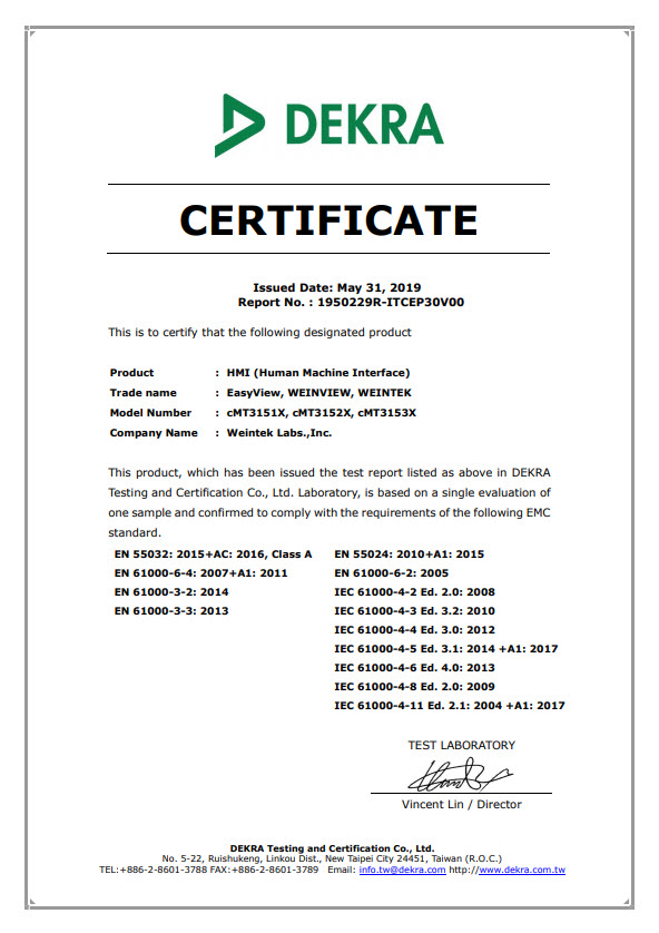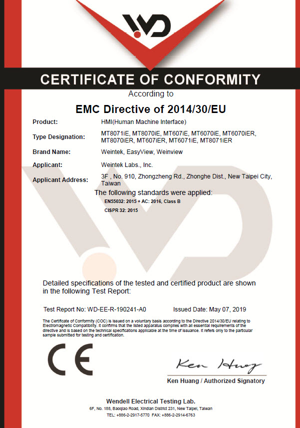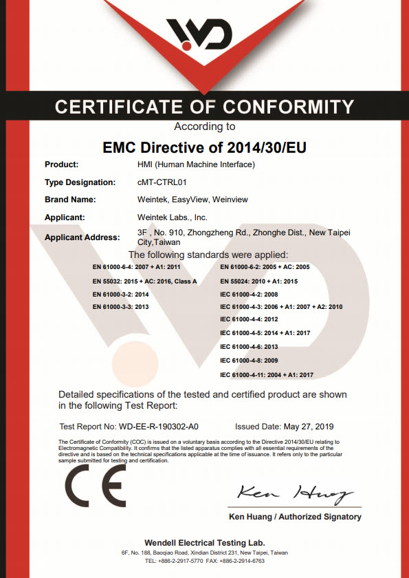 The product development, production process, and results of Weintek are all efficiently managed with ISO9001. Apart from that, Weintek products are guaranteed with other international product standards such as UL, CE, and RoHS. To meet the requirements of green environmental protection technology is a never changing promise.
